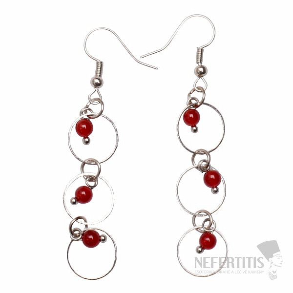 Fashion earrings with red agate. Length including so-called afro curtains approx. 6 cm (after hanging in the ear), bead size approx. 4.5 mm. The metal parts are made of base metal. Illustrative illustration, you are buying natural material, individual earrings may differ slightly from the accompanying photos in color shade and stone drawing.