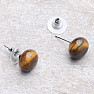 Beautiful and elegant earrings made of large beads of the natural tiger's eye protect against danger and suppress depression. The earrings are equipped with a snap closure, where a large disc is attached to the shaft for attachment. The earrings are set with flat tiger eye beads with a diameter of about 12 mm. Earring shaft length approx. 12 mm.