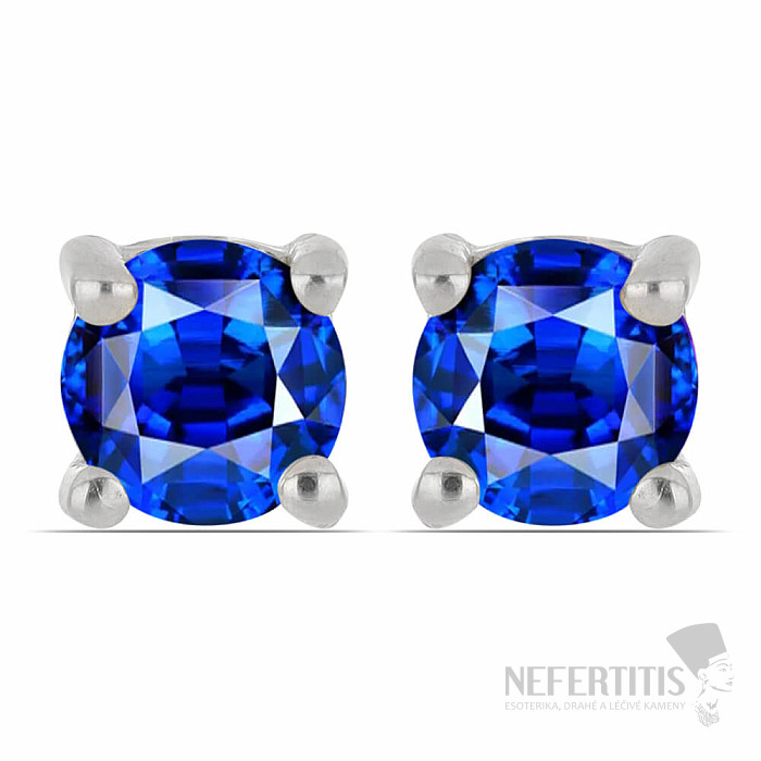 Exclusive silver earrings from the Nefertitis Collection design line with natural cut blue sapphires. Sapphires are complemented by cubic zirconias for an unmistakable sparkling shine. The stones are set in rhodium-plated silver , the surface of which resembles the appearance of white gold, giving the earrings a luxurious impression. Rhodium-plated silver is less susceptible to oxidation (blackening) of the surface. Beautiful sparkling jewelry with a clear gem-quality stone, the beauty of which is emphasized by the impact of light on the individual facets of the cut, suitable for various occasions. Rhodium-plated silver Ag 925/1000. The stated weight is for the entire pair. Sapphire size 4 mm. Illustrative image.
