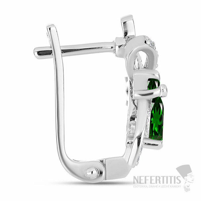 The stones are set in rhodium-plated silver , the surface of which resembles the appearance of white gold, giving the earrings a luxurious impression. Rhodium-plated silver is less susceptible to oxidation (blackening) of the surface. Beautiful sparkling jewelry with a clear gem-quality stone, the beauty of which is emphasized by the impact of light on the individual facets of the cut, suitable for various occasions. High-quality safety fastening of the earrings, so-called ladies' patent. Rhodium-plated silver Ag 925/1000. Chrome diopside size 5 mm. Illustrative image.