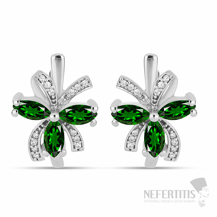 Silver earrings with cut chrome diopsides and zircons Ag 925 026541 DIO