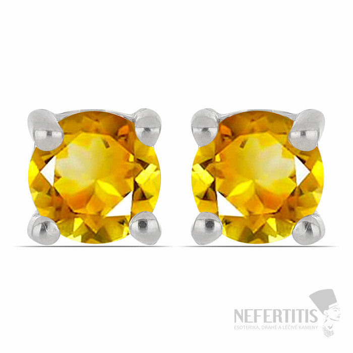 Exclusive silver earrings from the Nefertitis Collection design line with cut citrines. The stones are set in rhodium-plated silver , the surface of which resembles the appearance of white gold, giving the earrings a luxurious impression. Rhodium-plated silver is less susceptible to oxidation (blackening) of the surface. Beautiful sparkling jewelry with clear jeweler-quality stones, the beauty of which is emphasized by the impact of light on individual facets of the cut, suitable for various occasions. Rhodium-plated silver Ag 925/1000. The stated weight is for the entire pair. Citrines size 4 mm . Illustrative image.