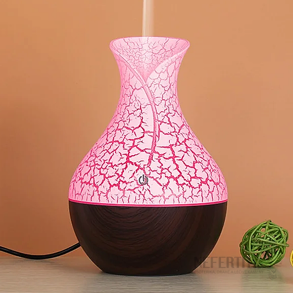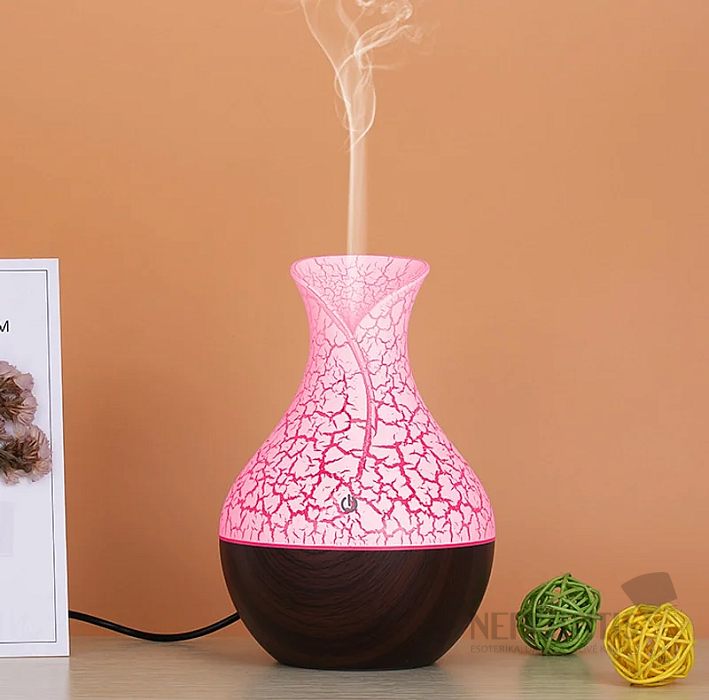 The vase-shaped diffuser brings an elegant natural element to the interior. The lower part with a dark wood decor looks luxurious, while the upper "lava" texture backlit by the changing light creates a spectacular play of colors.