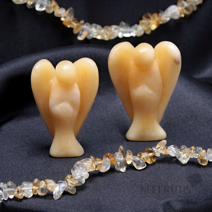 Guardian angel made of yellow jade. A charming angel statuette made of carved and polished natural stone is not only a beautiful decoration, but also a protective talisman. An angel is a powerful symbol that expresses happiness and protection from everything bad in life , it is a symbol of hope, enlightenment and guidance on the right path through life. Illustrative image. The size, structure of the stone, the stone pattern and color may vary slightly from piece to piece, but you will always receive an angel of comparable quality.