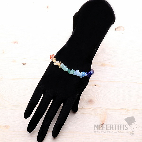 In this lovely piece of jewelry there are seven semi-precious stones - red garnet , orange carnelian , yellow citrine , green aventurine , light blue chalcedony , dark blue lapis lazuli and lavender purple amethyst , which are arranged by color according to the individual chakras in our body. . From the Root to the Crown Chakra . Precious stones clean and charge individual chakras, and thanks to this, maximum harmonization of the entire energy system of your organism can be achieved.
