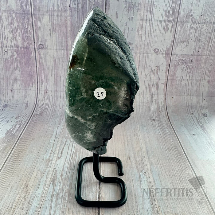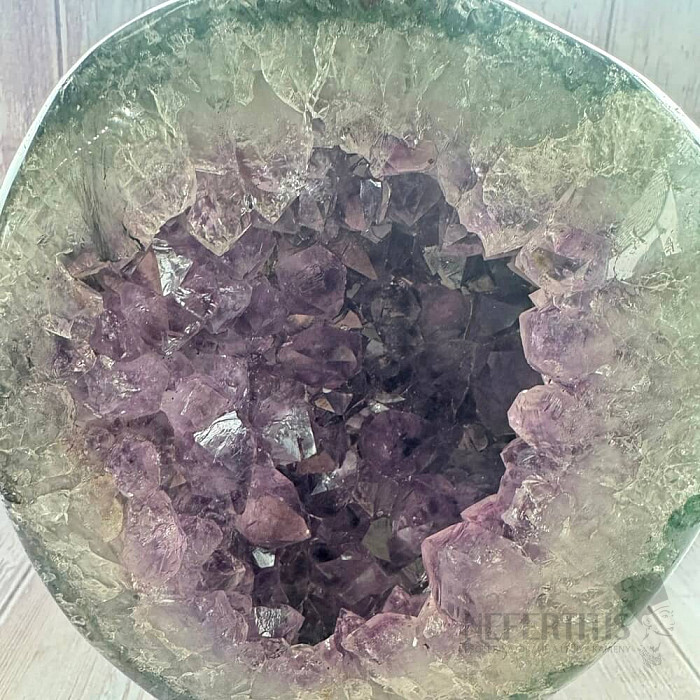 Amethyst druse of quality A on a metal stand. You are purchasing the exact piece shown. The stand may stain, so we recommend placing a mat under it and not placing it directly on furniture. Country of origin:… more »