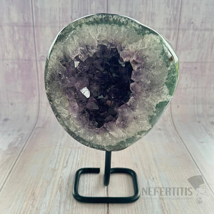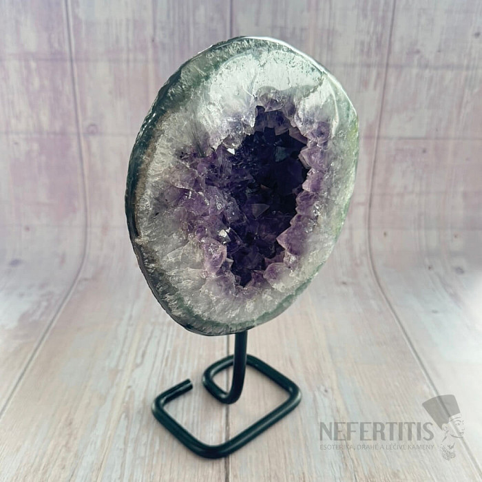 Amethyst druse of quality A on a metal stand.