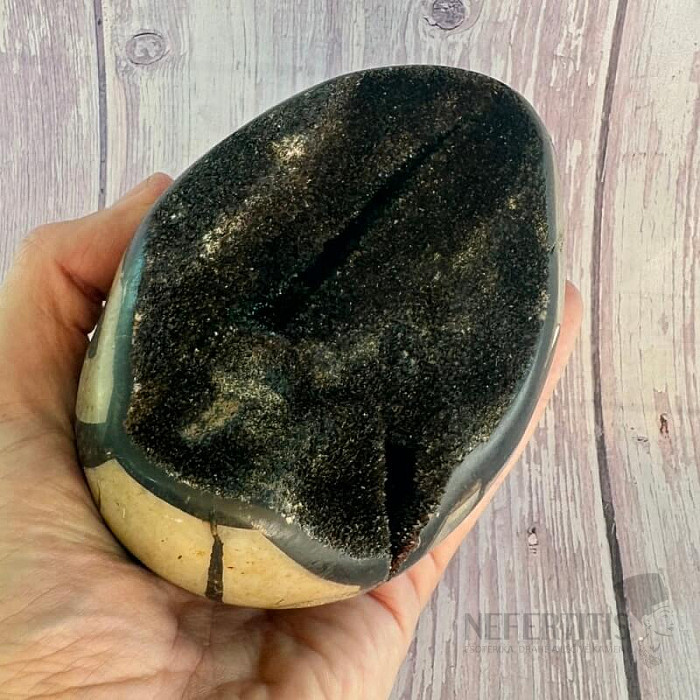Septaria (also known as Dragon Stone ) is made up of tiny crystals of Calcite, Aragonite and Chalcedony . It combines the properties of all the minerals it is made of, making it a stone with an exceptionally strong effect. It provides strong energy protection on both the physical, mental and etheric levels. It sends out calming energy around it. It is an excellent ally when studying. It helps its owner with motivation and subsequently translate new thoughts and ideas into practice. It favorably develops a career, especially one associated with public speaking. It stimulates the basic - root chakra. It brings an uplifting feeling of joy and inner development.