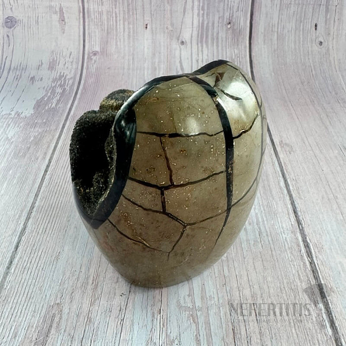 Septaria - dragon egg. Attractive decoration for an apartment or office. The egg has a polished surface on which it stands.