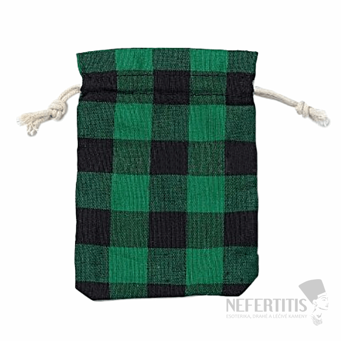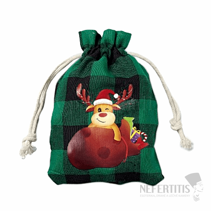 Jute tartan bag Christmas reindeer with drawstring for storing small valuables, stones, jewelry and for attractive packaging and gifts for those you love. Gift bags and pouches are an easy and cheap alternative to gift boxes. Give your favorite small items, jewelry or stones comfort and protection inside this bag. Illustrative image.
