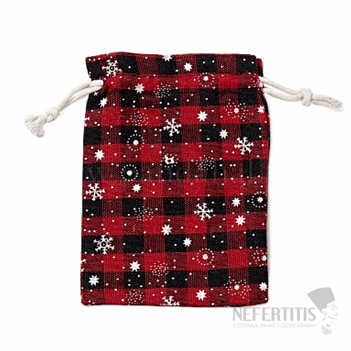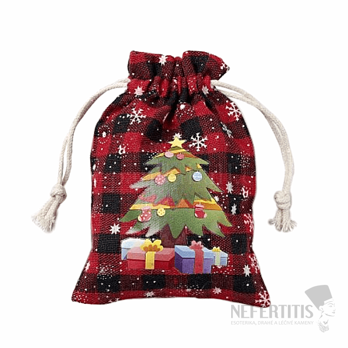 Jute tartan bag Christmas tree with drawstring for storing small valuables, stones, jewelry and for attractive packaging and gifts for those you love. Gift bags and pouches are an easy and cheap alternative to gift boxes. Give your favorite small items, jewelry or stones comfort and protection inside this bag. Illustrative image.