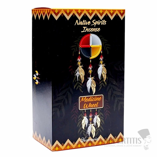 Native spirits Medicine Wheel musk with an exotic, slightly intoxicating, sensual scent of musk. Unique Indian incense sticks from the manufacturer Goloka, on a bamboo chip, made from a mixture of herbs, honey, resins and oils with the scent of musk.