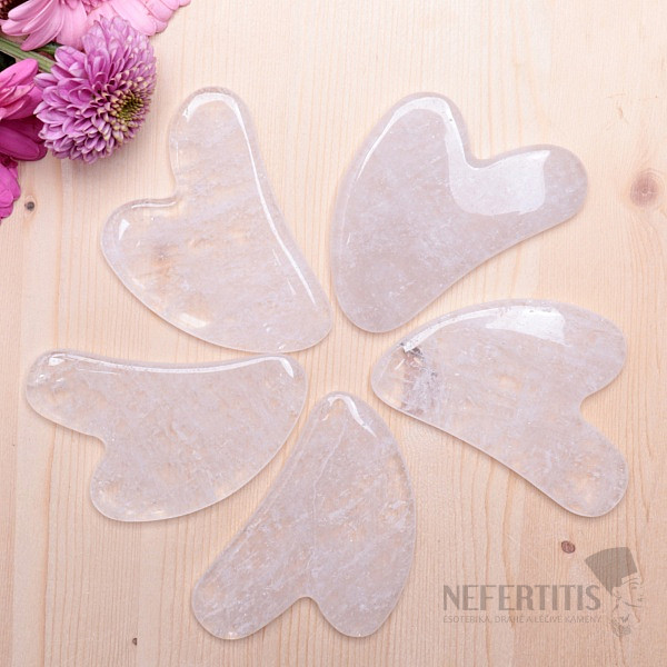Gua sha made of crystal in the shape of a heart designed to massage the face, back, neck and fingers. At first, the cool touch of the stone has a really beautiful feeling on the skin, it will serve to relieve headaches or the feeling of heavy eyelids after waking up in the morning. This crystal "gua" is intended for massaging the face, neck, back, fingers using the Gua sha technique. The total length of the massage is about 8 cm.