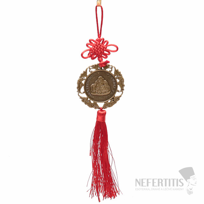 Feng Shui traditional protective curtain Happy Buddha for happiness and prosperity, with a traditional knot and tassel against fear, negativity and to promote stability, suitable for cars, homes, offices. Hinge length… more »