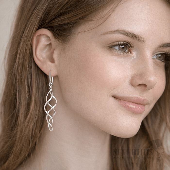 These 925/1000 sterling silver dangle earrings are made of subtle, intertwined spirals that together create an airy and harmonious whole. The design of the earrings is minimalist, but at the same time very effective - thanks to their construction, the spirals gently move, twist and reflect light from different angles when worn.