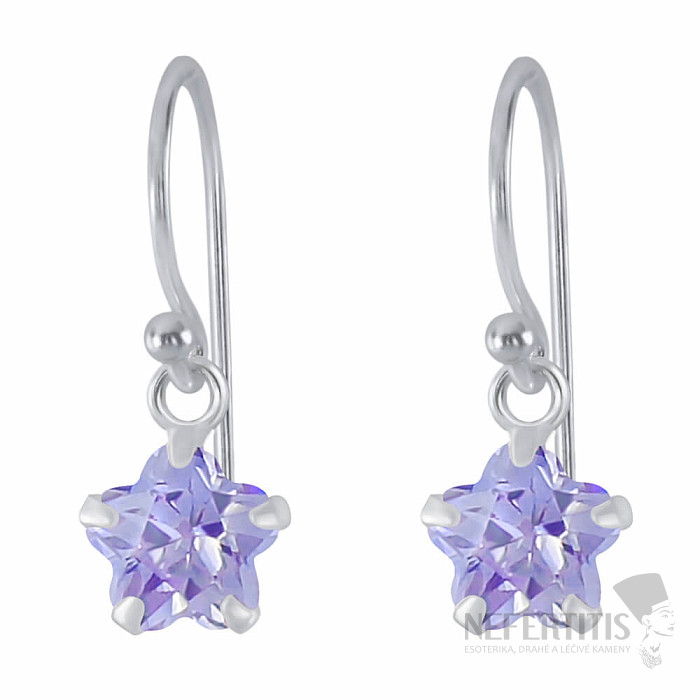 These 925/1000 silver dangle earrings are decorated with purple stars, which form a dominant, yet still subtle element of the entire piece of jewelry. The star motif in combination with the purple color looks elegant, original and slightly mystical, while the earrings retain their everyday wearability.