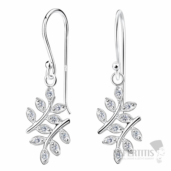 These 925/1000 silver earrings are inspired by the symbol of the olive branch , which represents peace, harmony and natural beauty. The stylized leaf is set with several clear cubic zirconias , which are set to gently reflect light and give the jewelry a lively, yet still subtle sparkle.