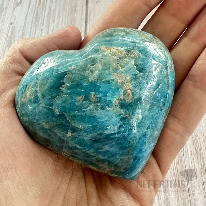 Blue apatite is a stone of intuition, communication and personal growth . It helps open the heart and mind, supports self-confidence and the courage to express one's own truth. Its energy connects spiritual perception with everyday reality and helps find inner balance. This heart made of apatite from Madagascar is not only a beautiful decorative piece, but also a protective talisman . It is suitable for meditation, supporting self-expression or as a gift for a loved one.