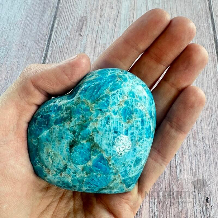 Blue apatite is a stone of intuition, communication and personal growth . It helps open the heart and mind, supports self-confidence and the courage to express one's own truth. Its energy connects spiritual perception with everyday reality and helps find inner balance. This heart made of apatite from Madagascar is not only a beautiful decorative piece, but also a protective talisman . It is suitable for meditation, supporting self-expression or as a gift for a loved one.
