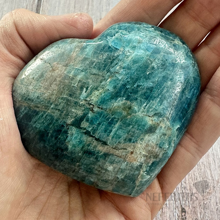 Blue apatite is a stone of intuition, communication and personal growth . It helps open the heart and mind, supports self-confidence and the courage to express one's own truth. Its energy connects spiritual perception with everyday reality and helps find inner balance. This heart made of apatite from Madagascar is not only a beautiful decorative piece, but also a protective talisman . It is suitable for meditation, supporting self-expression or as a gift for a loved one.