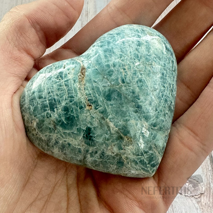 Blue apatite is a stone of intuition, communication and personal growth . It helps open the heart and mind, supports self-confidence and the courage to express one's own truth. Its energy connects spiritual perception with everyday reality and helps find inner balance. This heart made of apatite from Madagascar is not only a beautiful decorative piece, but also a protective talisman . It is suitable for meditation, supporting self-expression or as a gift for a loved one.