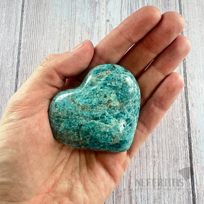 Blue apatite is a stone of intuition, communication and personal growth . It helps open the heart and mind, supports self-confidence and the courage to express one's own truth. Its energy connects spiritual perception with everyday reality and helps find inner balance. This heart made of apatite from Madagascar is not only a beautiful decorative piece, but also a protective talisman . It is suitable for meditation, supporting self-expression or as a gift for a loved one.