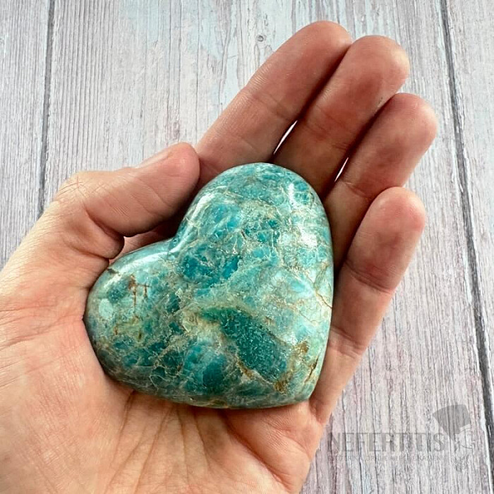 Blue apatite is a stone of intuition, communication and personal growth . It helps open the heart and mind, supports self-confidence and the courage to express one's own truth. Its energy connects spiritual perception with everyday reality and helps find inner balance. This heart made of apatite from Madagascar is not only a beautiful decorative piece, but also a protective talisman . It is suitable for meditation, supporting self-expression or as a gift for a loved one.