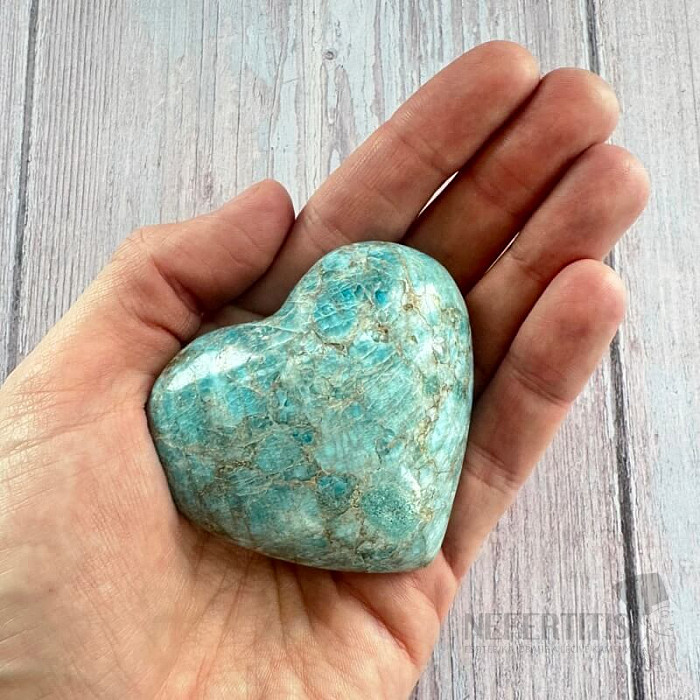 Blue apatite is a stone of intuition, communication and personal growth . It helps open the heart and mind, supports self-confidence and the courage to express one's own truth. Its energy connects spiritual perception with everyday reality and helps find inner balance. This heart made of apatite from Madagascar is not only a beautiful decorative piece, but also a protective talisman . It is suitable for meditation, supporting self-expression or as a gift for a loved one.