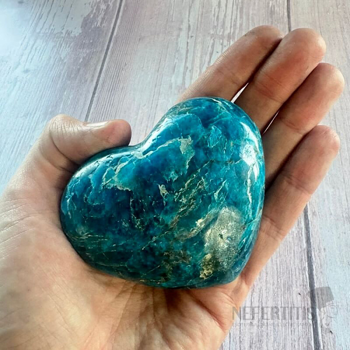 Blue apatite is a stone of intuition, communication and personal growth . It helps open the heart and mind, supports self-confidence and the courage to express one's own truth. Its energy connects spiritual perception with everyday reality and helps find inner balance. This heart made of apatite from Madagascar is not only a beautiful decorative piece, but also a protective talisman . It is suitable for meditation, supporting self-expression or as a gift for a loved one.