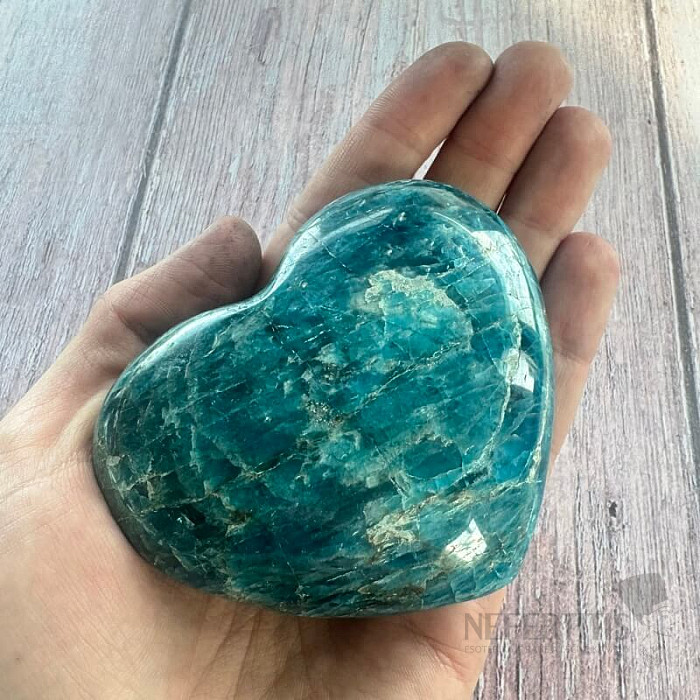 Blue apatite is a stone of intuition, communication and personal growth . It helps open the heart and mind, supports self-confidence and the courage to express one's own truth. Its energy connects spiritual perception with everyday reality and helps find inner balance. This heart made of apatite from Madagascar is not only a beautiful decorative piece, but also a protective talisman . It is suitable for meditation, supporting self-expression or as a gift for a loved one.