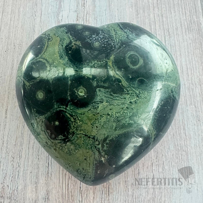 Attractive polished heart made of kambaba jasper in premium quality. Country of origin: Madagascar. You are purchasing the pictured Kambaba jasper directly. Natural material may contain fine cracks or voids. The heart… more »