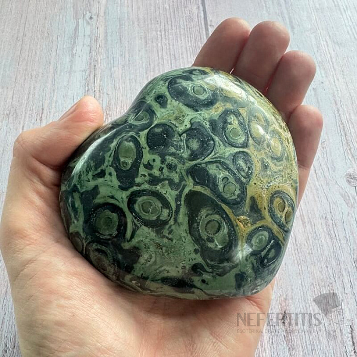 Kambaba jasper , also known as Kambaba stone or green stromatolite jasper, is an extremely old stone dating back 3 billion years. The green and black swirling color pattern of this stone is responsible for many people confusing this stone with malachite or nebula - the nebula stone. Kambaba is not actually a jasper, but rather a fossil. This stone is classified as a stromatolite, which refers to a cluster of fossilized algae that formed this mineral. One of the special fossils in Kambaba jasper is actually cyanobacteria, which are believed to have helped create the first oxygen atmosphere on Earth. Other minerals in this special combination of stones are usually quartz, feldspar, cristobalite, and albite. The exact date and location of the first discovery of this stone is unknown, but it can be found in South Africa, Madagascar, and the sea that separates them. The origin of the stone's name is also much debated, with the leading theory suggesting that Kambaba jasper was named after Cheitharol Kambaba. Cheitharol Kambaba is a court chronicle of the kings of Manipur, India, and has existed for thousands of years.