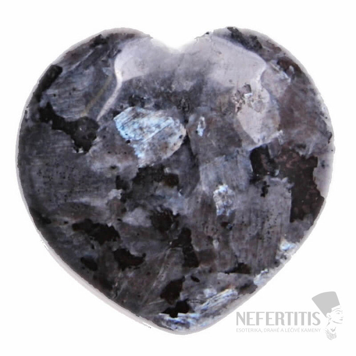 A beautiful, polished heart made of larvikite - a black moonstone. Each heart is carefully selected, each piece is an original. Dimensions: approx. 3.8 x 4 cm (height x width), weight approx. 21 - 25 g. Country of origin: Norway.