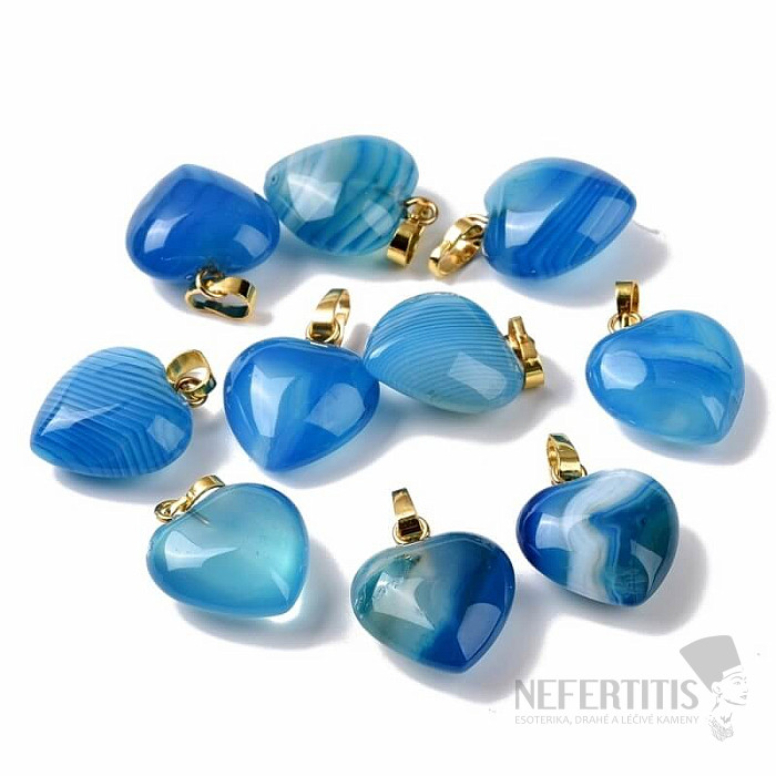 Charming blue agate heart pendant. Heart size approx. 1.5 cm, handle made of jewelry metal. Illustrative image, you are buying a piece of jewelry made of natural material, where the individual types of stones may differ from the accompanying photos in terms of their color shade, pattern and color saturation.