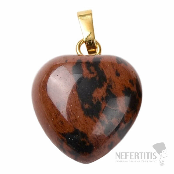 An attractive heart-shaped mahogany obsidian pendant with a base metal clasp. A very elegant and lovely piece of jewelry. Heart size approx. 1.5 cm. Illustrative image , individual pendants may differ from it mainly in color shade, structure and pattern of the stone.