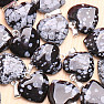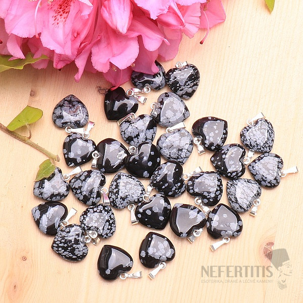 The charming heart pendant made of flake obsidian provides strong protection against evil and all negativity. The heart brings love, happiness and harmony to life. Heart size approx. 1.5 cm, handle made of silver jewelery metal. Illustrative depiction, individual pendants differ significantly from it, mainly in color shade, structure and drawing of the stone, but you will always receive jewelry of the same quality.