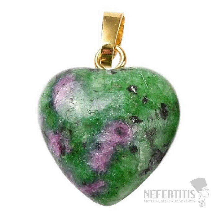 Charming ruby heart pendant in zoisite. Heart size approx. 1.5 cm, handle made of jewelry metal. Illustrative image, you are buying a piece of jewelry made of natural material, where the individual types of stones may differ from the accompanying photos in terms of their color shade, pattern and color saturation.