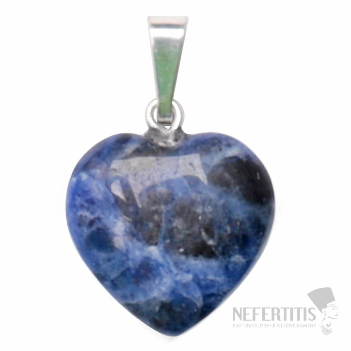 An attractive sodalite pendant in the shape of a charming heart with a silver jewelery metal handle allegedly suppresses mental and emotional confusion, adds courage and is a protective stone. Pendant size approx. 1.5 cm. Illustrative depiction , individual pendants may differ from it mainly in the structure, drawing and color shade of the stone.