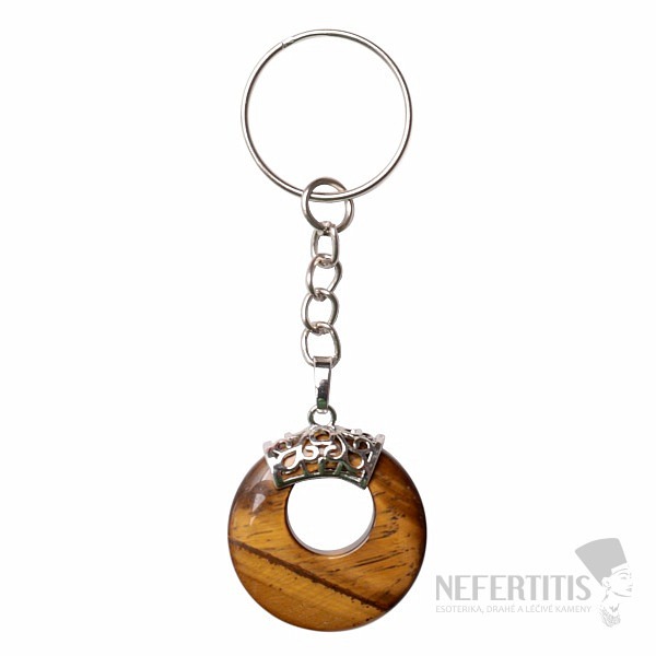 Keychain Circle of tiger eye. The size of the circle is about 2.7 cm, the length of the keychain is about 9 cm. Made of silvery jewelry metal. The total length of the keychain is about 9.5 cm. You are buying a product with natural stone, so the appearance of the stone, its drawing and color may differ from the accompanying photos.
