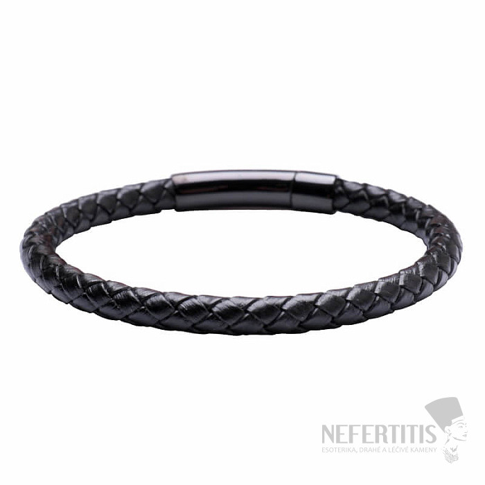 Fashionable men's bracelet made of black leather with a stainless steel clasp, stainless steel according to DIN 1.4301 (AISI 304). Bracelet width approx. 0.6 cm, circumference bracelet is approx. 21 cm, stainless steel push-in clasp. We strongly recommend measuring your wrist circumference before purchasing. Illustrative image.