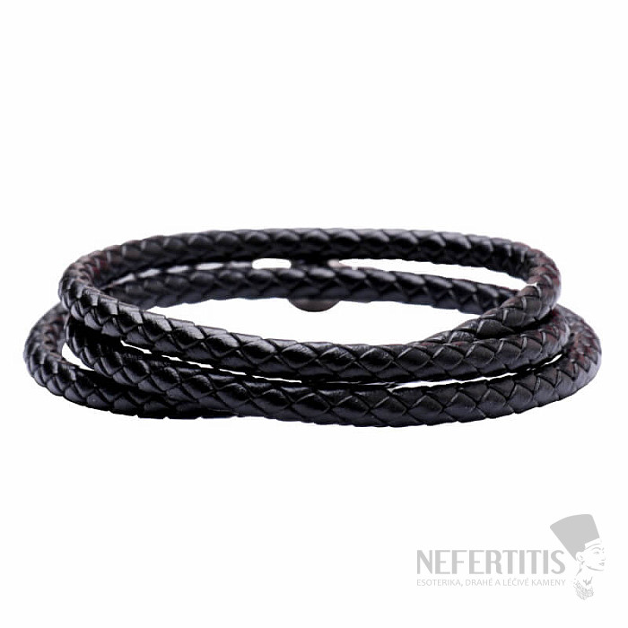 Fashionable men's wrap bracelet made of black leather with a stainless steel clasp, stainless steel according to DIN 1.4301 (AISI 304). Bracelet width approx. 0.55 cm, circumference bracelet is approx. 61 cm, stainless steel magnetic closure. The bracelet can be wrapped around the wrist 3 times. We strongly recommend measuring your wrist circumference before purchasing. Illustrative image.