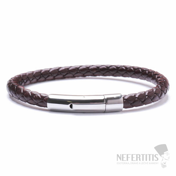 Fashionable men's bracelet made of brown leather with a stainless steel clasp, stainless steel according to DIN 1.4301 (AISI 304). Bracelet width approx. 0.6 cm, circumference bracelet is approx. 21 cm, stainless steel push-in clasp. We strongly recommend measuring your wrist circumference before purchasing. Illustrative image.