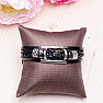 Casual attractive men's bracelet made of black cowhide with decorative metal elements and hemtatio. The adjustable size of the bracelet is about 16 to 25 cm in circumference. The ornaments are made of base metal… more »