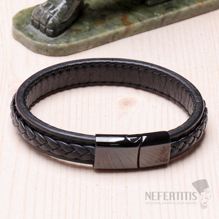 Attractive men's black leather bracelet with stainless steel clasp. Bracelet width approx. 1.1 cm, circumference bracelet is about 22 cm, magnetic closure, stainless steel according to DIN 1.4301 (AISI 304). Therefore, we strongly recommend that you measure the circumference of your wrist before purchasing. Illustrative illustration.