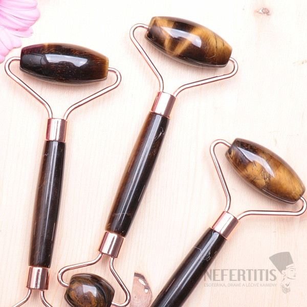 Double-sided tiger eye massage roller . The larger roller, also known as the face roller, is used to massage the limbs and back, the smaller roller is used to massage the face. At first, the cool touch of the stone has a really beautiful feeling on the skin and will serve to relieve headaches or heavy eyelids after waking up in the morning, and after a while of massaging, it will reward you with warmth. The roller can be used on dry skin, or we can apply creams, ointments and oils through it, eg using the Gua sha technique. The massage parlor can be used both separately and during a partner massage. Thanks to the beautiful feelings that its use evokes, you can use it at any time to spend beautiful moments, and not only in pain. Illustrative depiction of natural material, where the color and structure of the stone may differ from the accompanying photographs. However, you will always receive a massage of comparable quality.