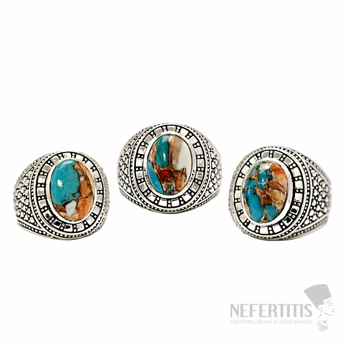 The result is a fascinating composite stone with a striking play of colors: from the orange, red and purple tones of mussels, through the blue shades of turquoise and copper lines. Spiny Oyster turquoise represents the union of sea, earth and metal - a harmony of natural elements.