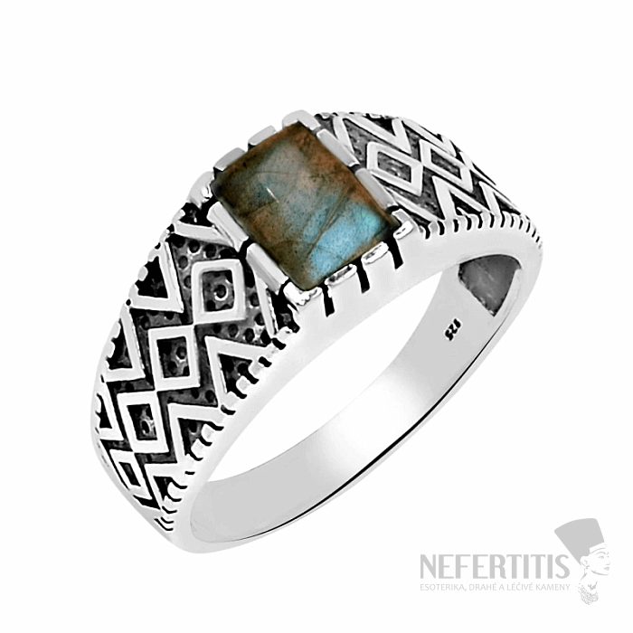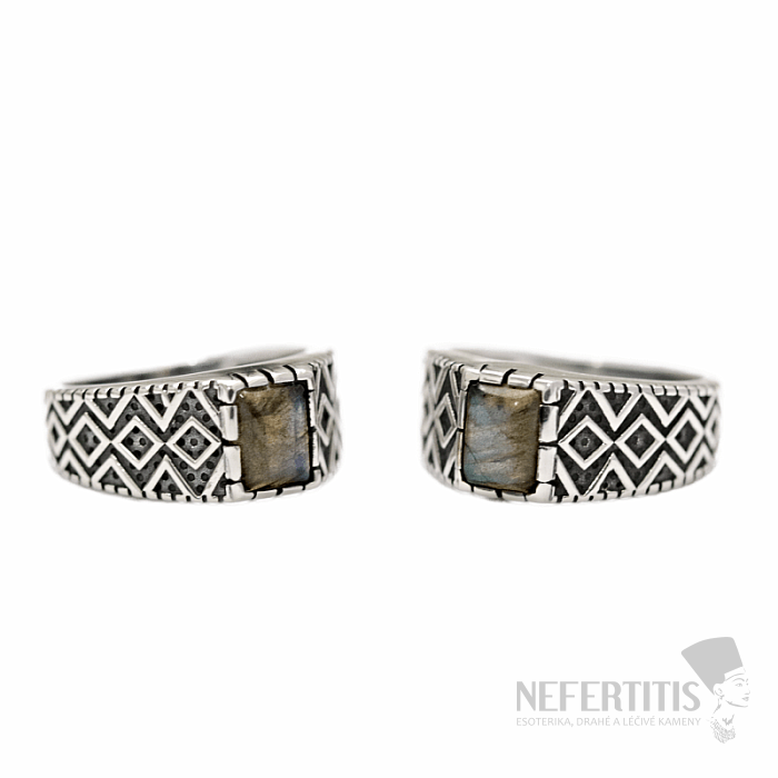 Men's silver ring with natural labradorite is a unique piece of jewelry that stands out for its elegance and mystical beauty. The ring is handmade from high-quality silver and set with a 9 mm square labradorite , which reveals a typical blue-green shine when the light hits it. The weight of the ring is approximately 5.6 g , which makes it a light and comfortable accessory for everyday wear and festive occasions. Illustrative image.