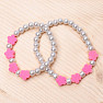 Cheerful bracelets for mother and daughter made of white glass beads with colorful flowers. A fashion accessory for little and big girls. The circumference of the bracelets is approx. 16 cm and 14 cm in the unstretched state, the bracelet for mothers can be stretched up to approx. 22 cm, the diameter of the beads is approx. 0.6 cm. Material: glass and plastic. Illustrative image.