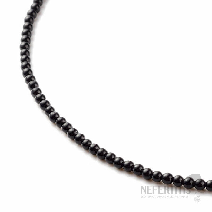 Necklace made of black agate beads. Size of beads approx. 3.5 mm, bijouterie fastening, metal parts made of base metal. Illustrative image, you are buying a natural product, therefore individual necklaces may differ from it mainly in color shade, luster and stone pattern. However, you will always receive a necklace of comparable quality.