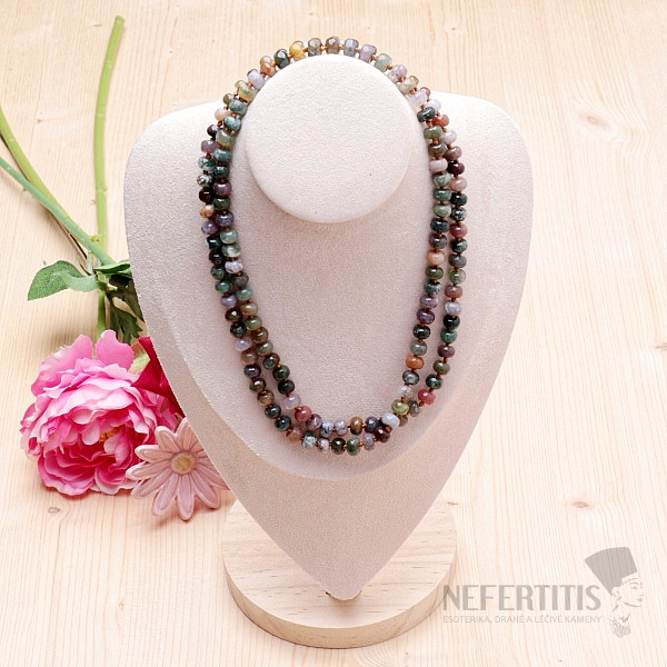 Necklace made of beautiful colored Indian agate rings with predominant green tones. Indian agate is usually a mixture of several types of agate, which makes these bracelets very attractive. Length approx. 90 cm, beads approx. 8 mm are strung on brown nylon thread, each bead is secured with a knot, the necklace is not elastic. lustrative depiction, buy natural material, therefore the individual bracelets may differ significantly from the accompanying photos, especially in the color of the stones, their composition, structure and drawing.